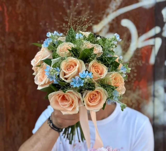 Buchet de mireasă modern și rafinat, perfect pentru ziua cea mare. Compoziția asortă delicatețea trandafirilor cu farmecul etapean al Oxypetalum-ului, completată de Panicum și Ruscus pentru volum și textură. Un buchet de nuntă memorabil, proaspăt și durabil.