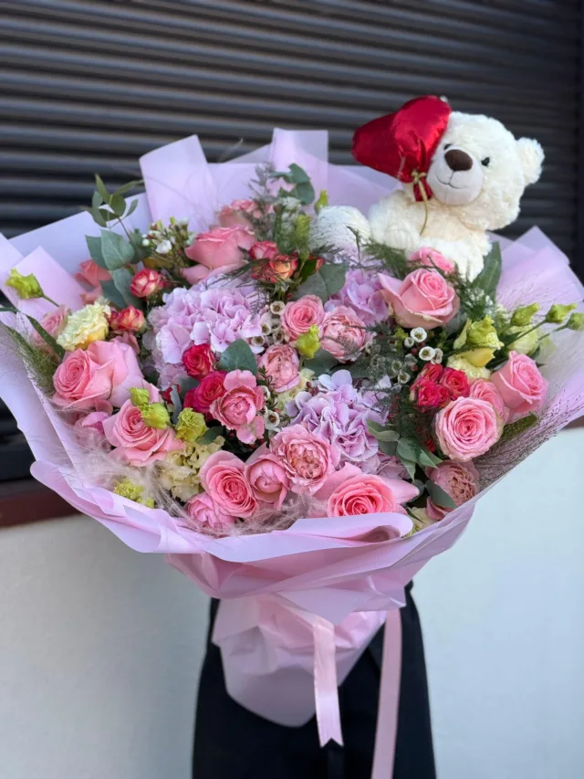 Buchetul nostru XXL este o compoziție spectaculoasă și generoasă, perfectă pentru cele mai importante ocazii. Combinația de trandafiri și hortensii elegante, completate de eustoma delicată și eucalipt parfumat, creează un aranjament luxos și memorabil. Comandă acest buchet impresionant pentru a transforma orice moment într-unul de neuitat. Ideal pentru aniversări, declarații sau sărbători speciale.