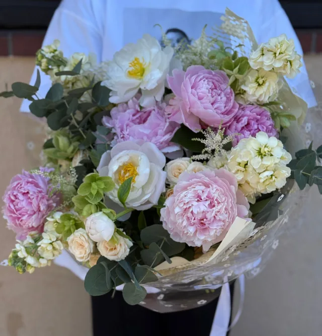 Buchetul Vis Parfumat este o explozie romantică de primăvară! Un aranjament rafinat ce combină bujori luxurianți cu elegante matthiola și heleborus. Completat de astilbe, miniroze și eucalipt pentru textură și parfum. Perfect pentru a aduce prospețime și culoare în orice interior. Un cadou memorabil pentru ocazii speciale sau simplul plăceri de a te înconjura cu frumusețe naturală