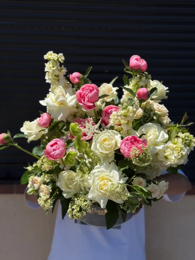 Imaginea produsului are caracter orientativ. Compozitia poate diferi fata de cea prezentata, in functie de sezonalitate si disponibilitatea florilor. Pot aparea diferente privind tipul florilor, cutiile, suporturile, ambalajele sau alte materiale componente, pastrand insa tema cromatica si stilul general.